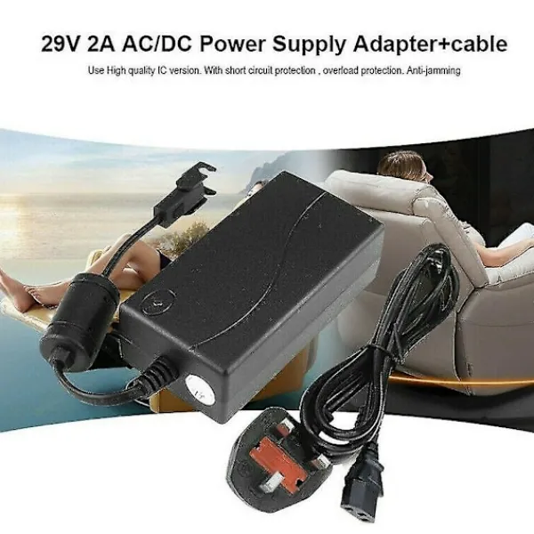 Hög kvalitet med högkvalitativ IC-version. Med kortslutningsskydd, överbelastningsskydd. Anti-störning högkvalitativ AC/DC-växelströmsförsörjning lämplig för många elektriska recliner-soffor/stolar, lämplig för soffor och stolar och perfekt ersättning. Ingång: 100V-240V 50/60Hz 1.5A Utgång: DC 29V 2.0A (kompatibel med 24V): 58W AC-kabeln är 60 tum lång. Pluggtyp: stickkontakt, lämplig för Kanada, Indien, Mexiko, Thailand, Taiwan, USA, Filippinerna, etc. Storlek: 115x60x35mm Material: PVC Färg: Svart Förpackningsinnehåll: 1 * 29V 2A AC/DC-strömadapter 1 * AC-kabel Endast ovanstående förpackningsinnehåll, andra produkter ingår inte. Obs: Ljus och olika skärmar kan orsaka att färgen på objektet i bilden skiljer sig något från det faktiska objektet. Den tillåtna mätfelet är +/- 1-3cm.