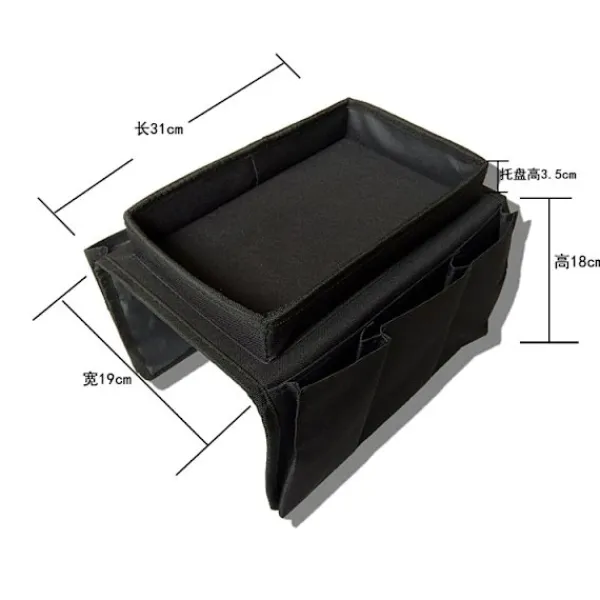 Lätt och bekväm: Den lätta designen gör att lådorna är lätta att flytta eller förvara när de inte används. Storlek: Denna förvaringslåda mäter 31*18 cm och kan enkelt placeras på armstödet på de flesta soffor. Stilren färgsättning: Brickan har en klassisk svart färg som ger elegans och en modern touch till din inredning. Mångsidig: Perfekt för förvaring av fjärrkontroller, mobiltelefoner, glasögon och andra småsaker du vill ha med dig.