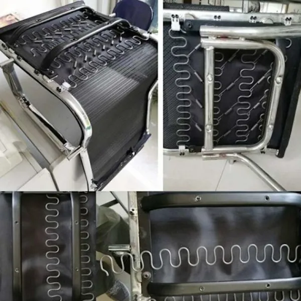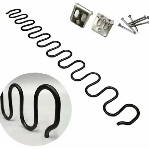 Specifikationer: Varje fjäder har en bakåtböjd design i båda ändar, fjädern är inte lätt att falla av, maskinen är skuren jämnt, storleken är exakt och stabil, skärningen är ren, ingen friktion, ingen rost. ; Soffans fjäderreparationskit är utformat för att ansluta en sicksackformad, icke-infälld fjäder till en träram av stoppade möbler för säten i möbelklädsel, bil eller andra applikationer Produktnamn: Fjädrar ersättning för soffa Material: järn, plast, kolstål Storlek: 50 x 48mm (LxB) Installationsmetod: