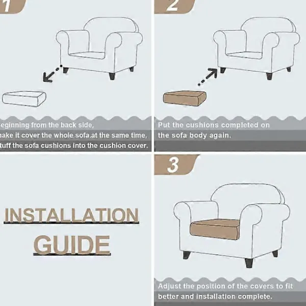 LÄMPLIG STORLEK Detta 3-sits överdrag mäter 150-191cm långt, 51-70cm brett, 5-23cm högt. Varje sitsöverdrag är utrustat med ett elastiskt band.