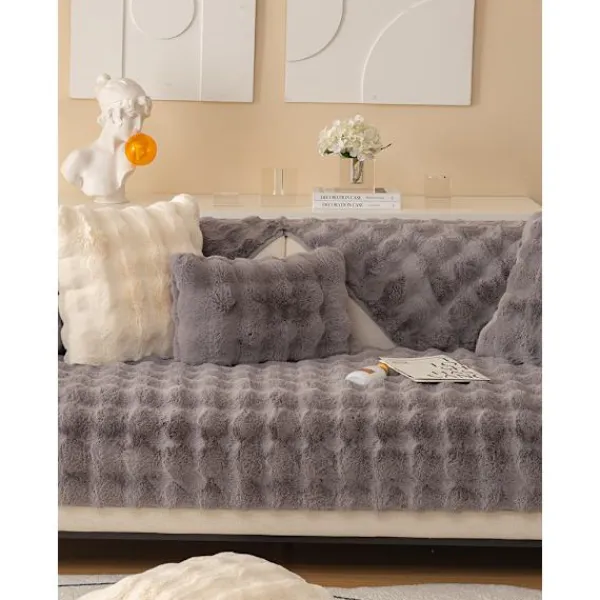 FLERA FUNKTIONER OCH ANVÄNDNINGSOMRÅDEN: Detta kaninplysch soffskydd skyddar din soffa, soffa, loveseat, schäslong och stolar Stänk, fläckar och husdjur. Den passar för alla årstider och används inte bara som sofföverdrag, utan även som sofffilt, lekmatta för barn, sovrumsmatta, golvmatta, fönsterbrädesmatta etc.
