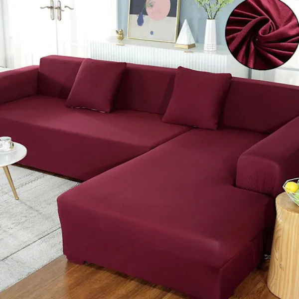 L-format hörnsofföverdrag, glaserad bomull, skyddsöverdrag för 3+2-sitsmöbler (vinröd) Specifikationer: Material: Polyester. – – – Användning: 3+2-sitssoffa. – – – Färg: Vinröd. – – – Storlek: Ca. 2-sitslängd: Ca 140~185 cm / 55,1~72,8 tum, 3-sitslängd: Ca 190~225 cm / 74,8~88,6 tum. – – Vikt: Ca 1456 g / 51,4 oz. Funktioner: Tillverkad av högkvalitativ polyester, den är mjuk, bekväm och hållbar. – – – Lätt att rengöra, lätt att ta på och av soffan för tvätt; tvättbar. – – – Detta mjuka sofföverdrag passar för 3+2-sitsiga L-formade hörnsoffor. – – – Det hjälper till att förhindra att saker som fläckar och djurhår skadar soffan. – – – De enkla och eleganta färgerna ger dina möbler ett fräscht utseende och är perfekta för familjesoffor.
