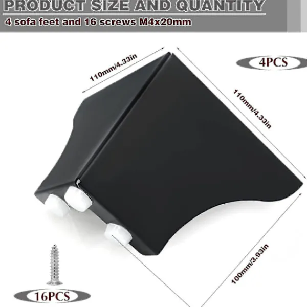 Hållbart material4 metallmöbelfötter är gjorda av högkvalitativt järn, ytan är frostad, hållbar, slät, rostfri, lätt att rengöra, stark bärförmåga och reptålig. Enkel monteringIntegrerad design, tunga fötter är utrustade med alla skruvar, golvskydd och 6 förborrade hål för varje fot på monteringsplattan, ta bara bort de gamla fötterna och dra åt de nya fötterna med en borr. Bärförmåga4 stödben över 800 kg vertikal viktbelastning, och den triangulära designen ökar stabiliteten i området som stöder möblerna utan att skaka. Paket innehåll4 bordsben, 16 skruvar.Bärförmågan hos de 4 möbelbenen är cirka 800 kg, och den triangulära designen ökar stabiliteten i området som stöder möblerna utan att skaka. FlerfunktionsLämplig för möbelben på skåp, soffa, soffbord, TV-bänk, säng, garderob, kontorsmöbler etc. så det är bekvämt för dig att installera, byta ut gamla eller skadade ben eller DIY-projekt soffa själv. Material: Järn Storlek: 4″ (10 cm) Färg: SilverSvart Paket ingår:4 st x Möbelben 16 st x Skruvar