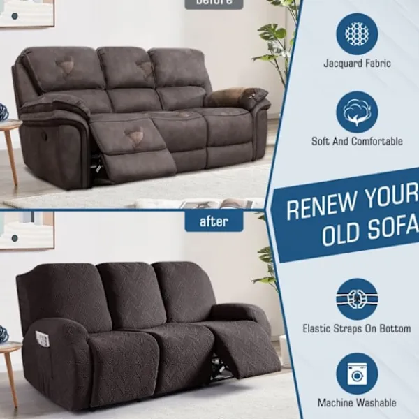 【Högkvalitativt tyg】: Våra sofföverdrag för loungestolar är tillverkade av 88 % polyester och 12 % spandex, med de senaste jacquardvävmönstren. Tyget är mjukt, andningsbart, mycket elastiskt och hållbart. Fällbara överdrag ger din soffa ett nytt utseende.
