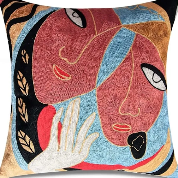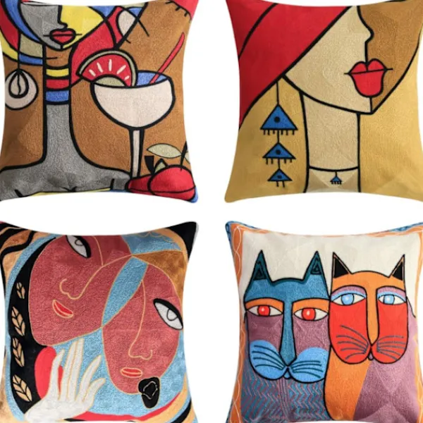 DESIGN: Broderat örngott i Picasso-stil med vintage vintagebilder är en konstnärlig heminredning inomhus och utomhus. Osynlig dragkedja är bekväm att sätta i och ta bort kudden.