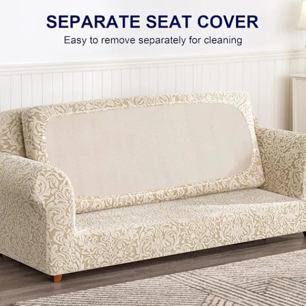 [Högkvalitativt tyg] Soffaöverdraget är tillverkat av mycket elastiskt jacquardbrokadmaterial, så det passar de flesta soffor eller stolar: T-formad soffa, hinkstol, svalstjärtsoffa, lädersoffa och de flesta soffor. Observera att våra sofföverdrag inte är vattentäta. [Tillgänglig storlek] Vi tillhandahåller 4 storlekar (1 set innehåller 1 sofföverdrag och 1 kuddfodral). Mediumstorlek kan vara 57-70 tum bred (145-178 cm). Denna länk säljer endast storlek M, vänligen kontakta oss om du behöver andra storlekar! [Charmig design] Jacquardbrokadmönsterdesign – enkel och elegant. Med unik färgteknologi, även om den används under lång tid, kommer stolsöverdraget att få ett nytt utseende. [Omfattande skydd] Våra möbelskydd kan skydda din soffa från dagligt slitage, spill, fläckar och husdjursrepor. En tjock elastisk ring sys på undersidan för att fixera den på varje kant, och glidhylsan kommer att fixeras ordentligt. [Rengöringstips] Maskintvätt med milt tvättmedel i kallt vatten; Smidig cirkulation; Torka på låg temperatur. Blek inte eller stryk inte.