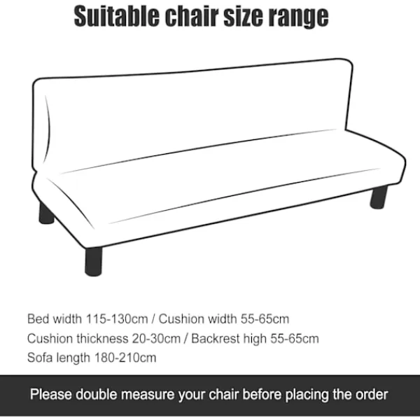 Lämplig för armstödslös soffa Soflängd 180-220cm, kuddbredd: 55-65cm, sängbredd: 115-130cm, rygghöjd: 55-65cm.Obs: Detta sofföverdrag är endast lämpligt för den nämnda bäddsoffan utan armstöd.