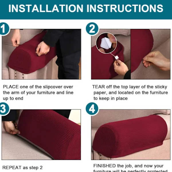 Enkel installation: Leta bara upp hörnet, drapera det över möbelarmen, släta ut det och fäst det självhäftande kardborrebandet som är osynligt och håller armstödet stadigt utan att riva eller skada. Enkel installation och borttagning, det är definitivt din dyrbara personliga privata dekoration