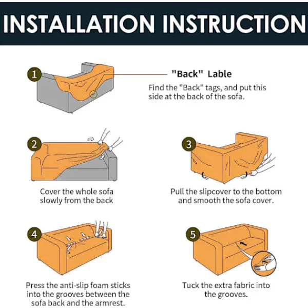 LÄTT INSTALLATION & SKÖTSEL: Detta soffaöverdrag är mycket enkelt att installera tack vare sin högstretchbara spandexväv och elastiska botten. Maskintvättbar i kallt vatten. Tvätta separat vid skonsam cykel med milt tvättmedel. Blek inte. [OBS: Färgen på de visade produkterna kan skilja sig något från den verkliga produkten på grund av olika inspelningsenheter och visningseffekter.