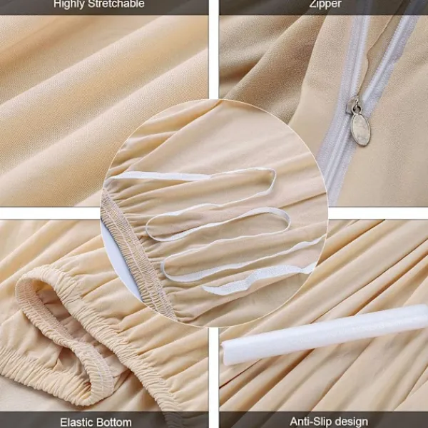 Soffaöverdraget är tillverkat av 92% jacquardpolyester och 15% spandex, stretchigt och mjukt, kemikaliefritt och miljövänligt. Ultramjukt och bekvämt, tåligt och hållbart. Det kan användas under alla årstider och kan vara i direkt kontakt med huden. Naturligt färgat utan färgton eller blekning.