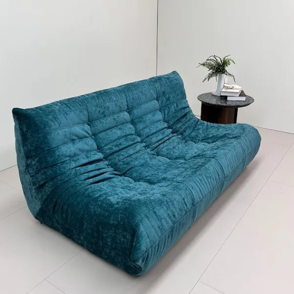 Den här tresitsiga bilen är noggrant konturerad för ergonomiskt stöd och anpassar sig naturligt till din kropps kurvor, vilket garanterar en bekväm upplevelse oavsett om du slappar, läser eller tar emot gäster. Den är klädd i förstklassigt soft-touch-tyg och ger en lyxig känsla och ett raffinerat utseende samtidigt som den behåller den motståndskraft som krävs för daglig användning. Rymlig och elegant, Togo tresitssoffa är perfekt för vardagsrum, familjerum eller underhållningsområden, och ger komfort och sofistikering till hjärtat av ditt hem.