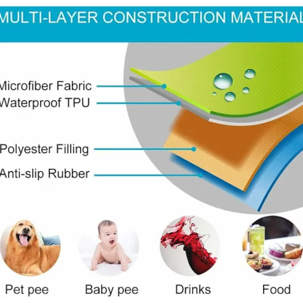 VATTENTÄT: Tillverkad av quiltad presenning av polyesterfyllning, vattentätt halkfritt överdrag, kemikaliefritt och miljövänligt, hög säkerhet för barn och husdjur.