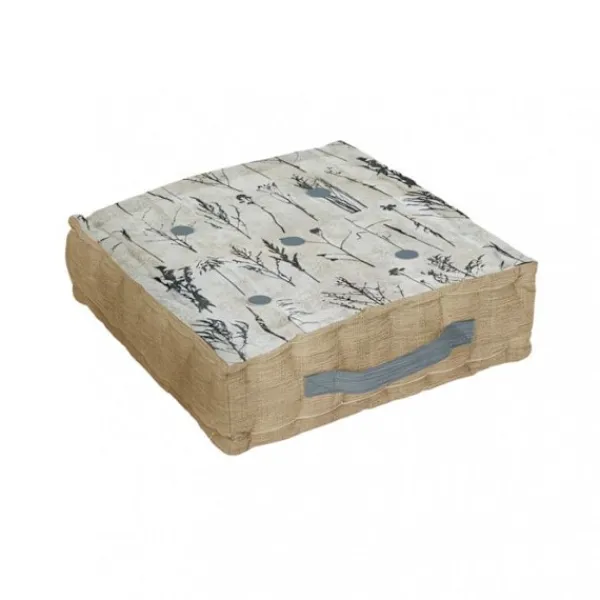 Mycket modern stoppad kudde med sin växtdesign och mycket trendiga jutefinish!!!! Finish: Kakihandtag. 4-punktssömmar. 1 vanlig kakisida/ 1 tryckt sida. Jute kontur. Färg: Khaki. Sammansättning: – 100% bomullsöverdrag; – fyllning: 100% bomull. Mått: 40x40x8 cm. Skötsel: Maskintvätt kallt.
