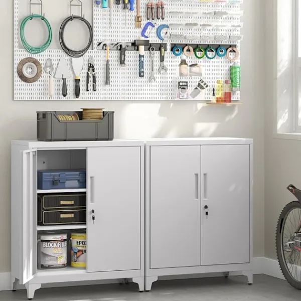 Praktiskt låsbart skåp med justerbara hyllor för säker förvaring