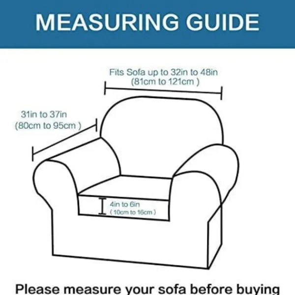 2 DELAR SET: Varje förpackning innehåller en uppsättning (2 delar – kropps- och sätesöverdrag är separerade för att få snyggare stilar och utseende). Stol(32″-48″), Loveseat(58″-72″), Soffa(72″-96″), XL Soffa(96″-116″).Våra överdrag är one-size-fits-most, mät ändå vänligen innan du beställer