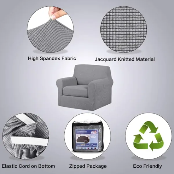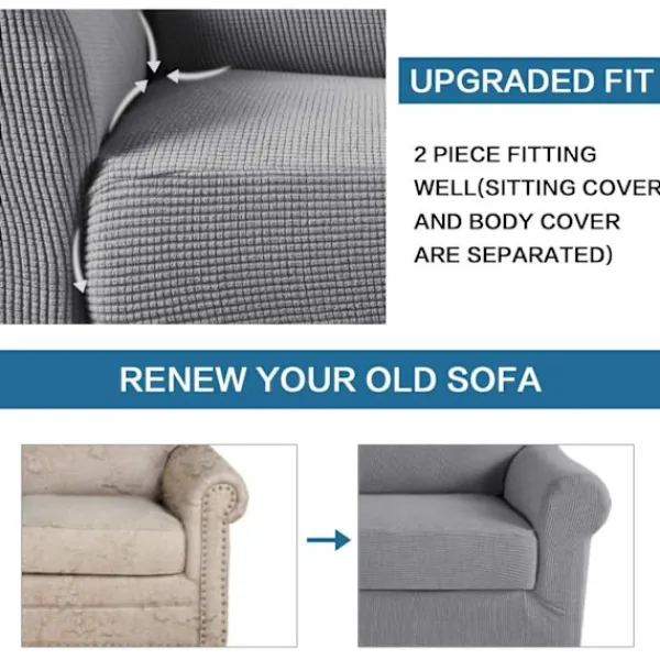 2 delar (inklusive basöverdrag och sittdynsöverdrag) stretchiga sofföverdrag är noggrant utformade för att passa ett brett utbud av soffformer och stilar.