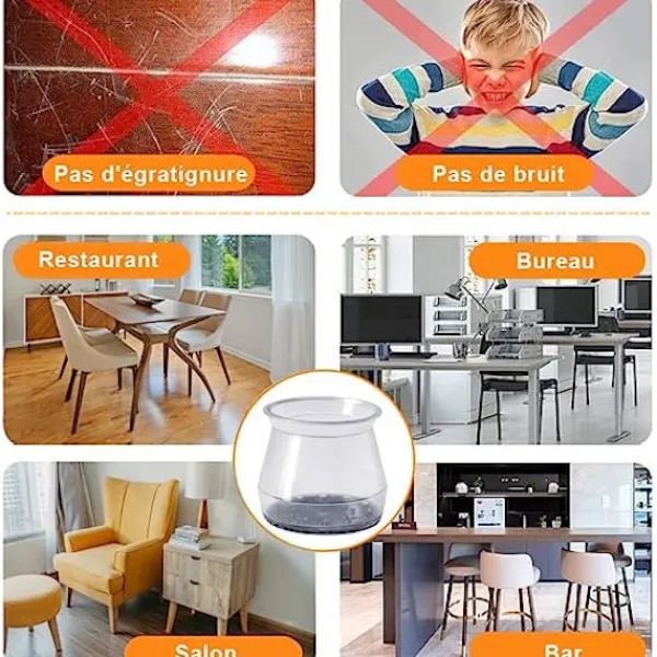 【Filtbotten faller inte av! 】Våra silikonstolsbensöverdrag använder inte gel eller spikar, och vi använder speciell teknik för att kombinera filt och silikon till en oskiljaktig del. Du behöver aldrig kämpa med klibbiga dynor eller lim. Paketet innehåller 32 stycken.