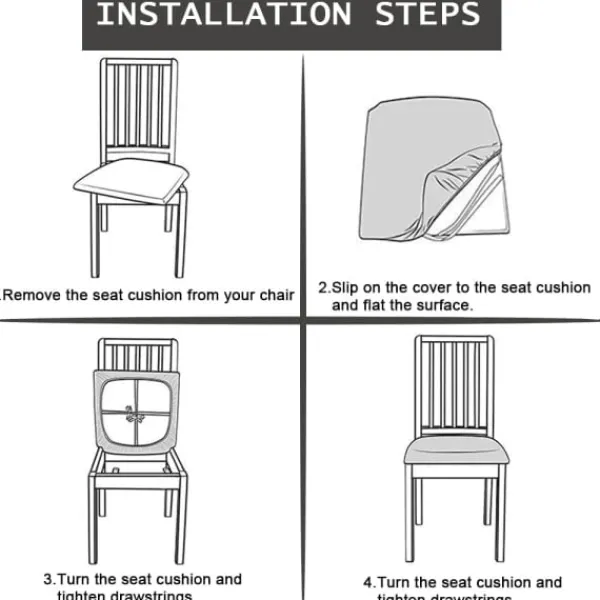 Uppgraderad design: Lätt att installera, köksstolsöverdragen är designade med ett elastiskt band kombinerat med en knapp. Sitsöverdragets tyg med vattentät och dammtät prestanda kan skydda stolen från spillt kaffe och vatten, matrester och smuts. Fräscha upp och förlänga livslängden på din stol i vardagen, den är idealisk för hem med husdjur eller barn, eller för alla som letar efter en ekonomisk lösning för möbelskydd.