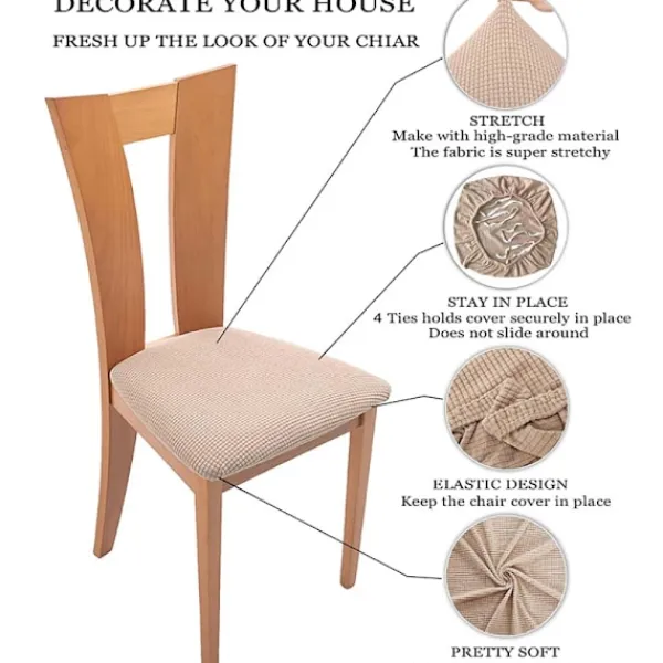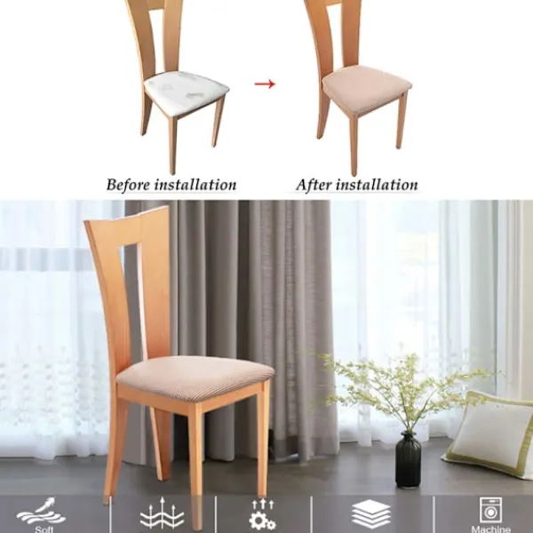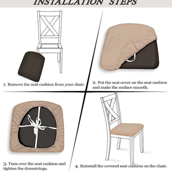 Högkvalitativt material: 90% polyester och 10% spandex. Stretchiga nog att passa de flesta klädda matstolar. Högkvalitativa tyger gör stolsöverdraget hållbart, skrynkelfritt, noppfritt, mjukt och bekvämt. Huvudfunktion och användning: Tillräckligt tjockt för att skydda dina stolar från fläckar, slitage, repor och revor, fräscha upp utseendet på dina gamla, skadade eller fula matstolar. Storlek och färg: Passar sittdynans längd 36-46 cm, sittdynans bredd 36-46 cm, sittdynans tjocklek 3-5 cm. Obs: För ett bättre utseende, ta bort dynan för att installera överdraget. Design: Stilren och enkel stil, utmärkt val för att dekorera vardagsrum, restauranger, kök, hotell, bröllop och andra tillfällen. Den elastiska botten och designen med 4 remmar kan förhindra att stolsöverdraget glider.