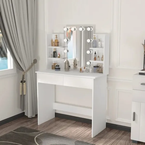 - Elegans och mångsidighet: Med sin enkla och eleganta design kommer detta sminkbord med spegel och ljus utan ansträngning komplettera vilken inredning som helst. Det kan användas som sminkbord, hemmakontorsskrivbord eller ges som en tankeväckande present.