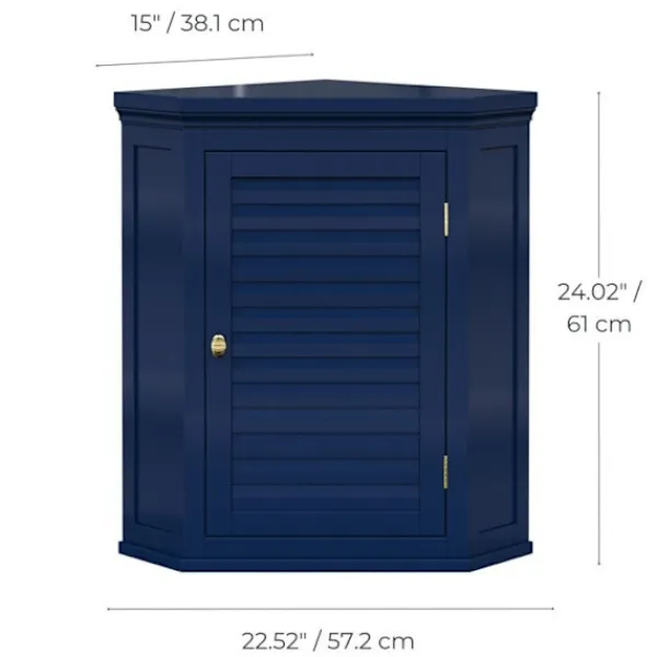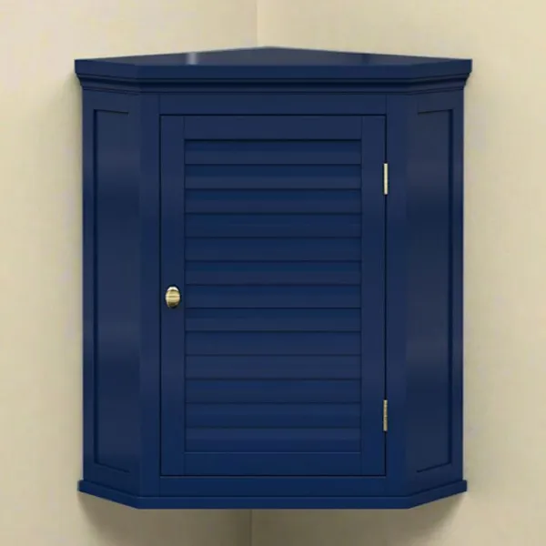 Få mer förvaring och praktisk användning med Glancy hörnväggen från Teamson Home, som har en falsk persienndörr och en formgjuten överliggare i klassisk marinblå. Dess kompakta format utnyttjar smart lediga hörn, samtidigt som den tillför en sofistikerad touch till ditt hem.