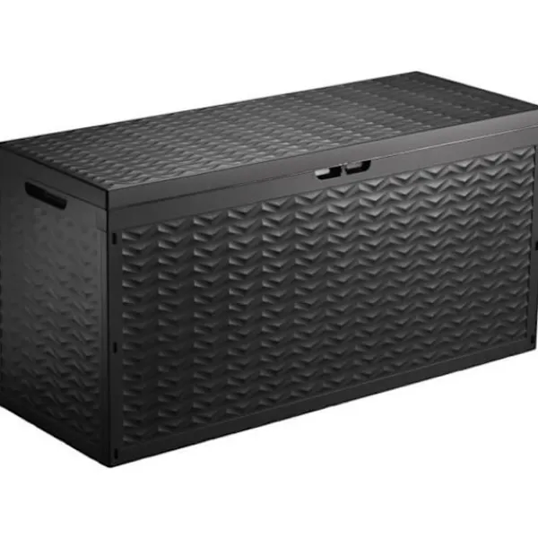 Förvaringskista – I resin – Kapacitet: cirka 330 L – Mått: 120 x 45 x H60 cm – Färg: anthracite grå.