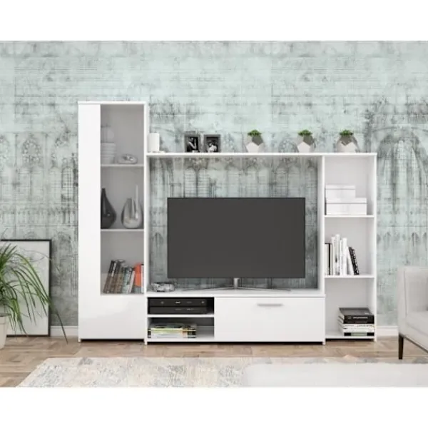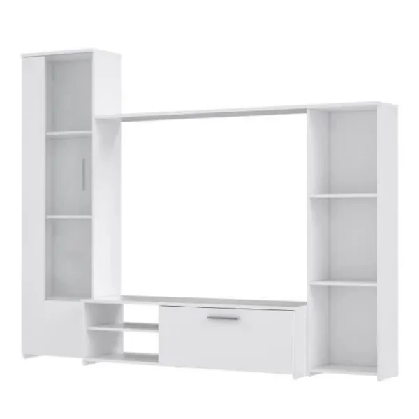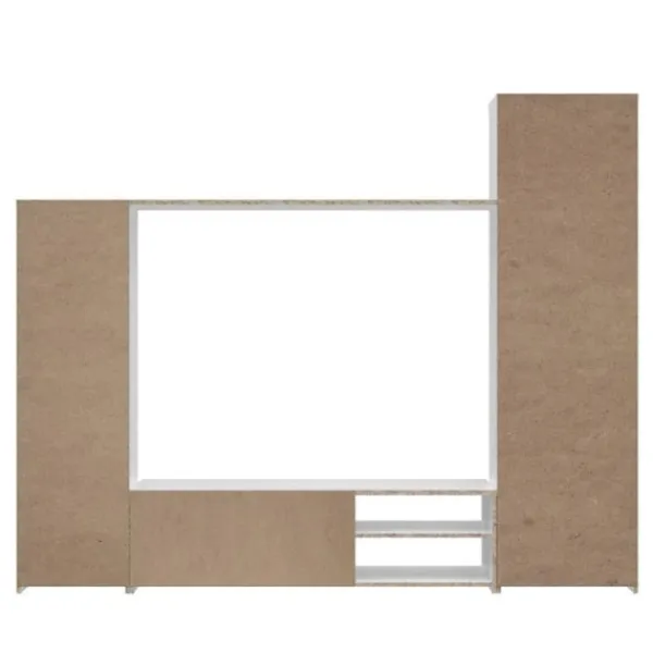 PILVI TV-skåp är en modern vardagsrumsmöbel med elegant design. Bestående av två sidoskåp i olika storlekar, en TV-enhet och en displayhylla, ger den tillräckligt med utrymme för att förvara dina multimediaenheter, DVD-spelare, mediabärare, böcker och alla typer av småsaker.