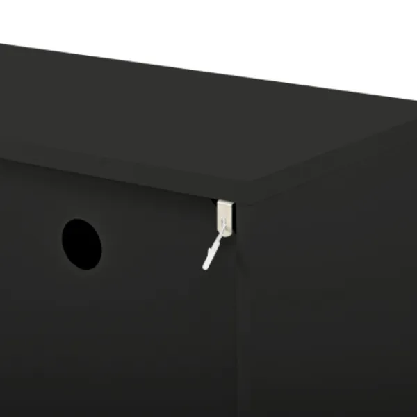 Komplett kabelhantering: Kabelöppningar för TV-enheter döljer kablarna och säkerställer ordning på bänken.