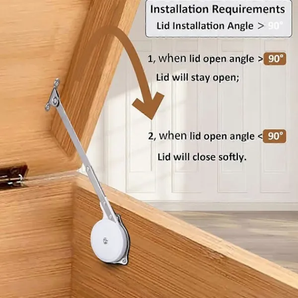 Med mångsidiga installationsalternativ kan vårt lockstöd fästas på antingen vänster eller höger sida och är kompatibelt med locköppningsvinklar från 90 till 105. Denna flexibilitet gör att du kan hålla locket i valfri vinkel för åtkomst och bekvämlighet.