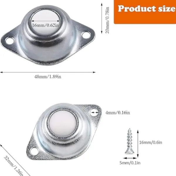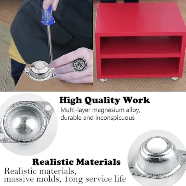 ”Högkvalitativt och hållbart material Stödytan på möbelkullagersätet är tillverkat av galvaniserat järn och nylon, resistent mot repor, korrosion, rost, stabilt, tåligt mot skador och hållbart.Paket och storlek Vi packar totalt 6 st kulhjul med 16 mm diameter kullagerrullar och 12 st 16 mm skruvar. Vi packar dem i plastlådor för enkel förvaring.Enkel installation Transmissionslagret har två skruvhål, installationshålets diameter är 4 mm, använd bara skruvar för att fixera nylonkultransportören på de transporterade föremålen.Kullager Den maximala bärförmågan för ett enda hjul är 15 kg, vilket är lämpligt för de flesta föremål och kan rotera 360 grader i universell riktning.Används vid olika tillfällenMöbelhjul, kulhjul används främst för att transportera föremål, inte bara för soffor, vitrinskåp, vagnar, hyllor, skotrar, skåp och apparater i köket, etc. Utan även för transmissionssystem, matningssystem, bearbetningssystem, packningsmaskin och hjälpmaskin.”