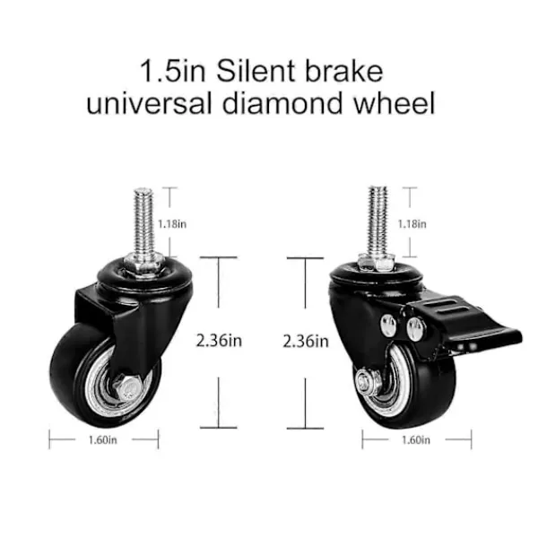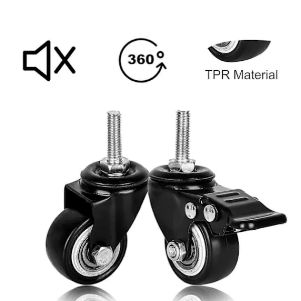 Lätt installation av tunga hjul: Du kan enkelt installera möbelhjul. M8 1,5 tum möbelhjul är små och praktiska, lätta att installera, lätta att använda, sparar tid och ansträngning och sparar dig mycket obehag.