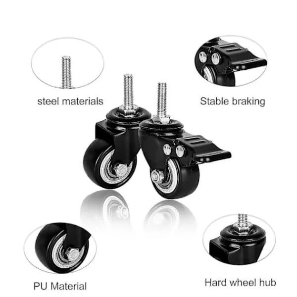 Njut av smidig, tyst glidning: Gummismöbelhjul har interna lager som rullar snabbt. Ytan är slät, så de kan inte fastna av hår, smulor och smuts. Paketet innehåller 2 hjul utan bromsar och 2 hjul med M8-bromsar. Många användningsområden: transporthjulen kan användas både inomhus och utomhus. Möbelhjul är lämpliga för gräsmatta, trägolv, kakel, mattor etc. De rullar tyst utan att skada ytan. Hjul kan användas i hem, skolor, garage, butiker och sjukhus. Hjul kan användas för att flytta små möbler som pallar, soffbord, växtställ och mer.