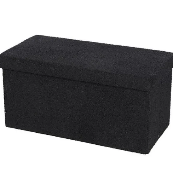 Fällbar förvaringsbänk med vadderad sits. Idealisk vid ingången för att ta av skorna eller vid fotänden av sängen. Polyester tyg med plyschutseende och struktur i MDF trä. L 76 x P 37,5 x H 37,5 cm. Färg: Svart. Material: Polyester. Höjd: 76 cm. Längd: 76 cm. Djup: 37,5 cm. Typ av trä: MDF. Monteringsmetod: Att montera själv. Serie: 37,5 cm