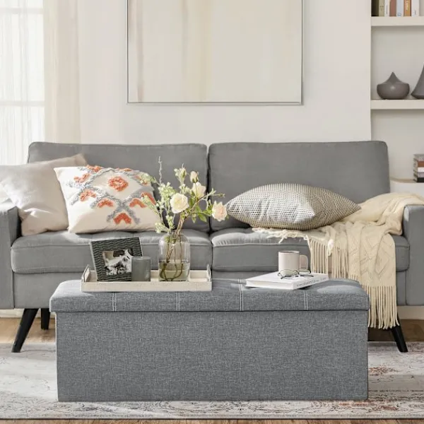 Valora Pufa – LSF077G05V1 är en mångsidig förvaringsorganisatör designad för att förbättra vilket rum som helst med sin ljusgrå nyans och eleganta design. Tillverkad av slitstark MDF-skiva, skum och ett linneliknande tyg, fungerar denna möbel som sittplats, koffert och fotpall, och erbjuder både funktionalitet och stil.