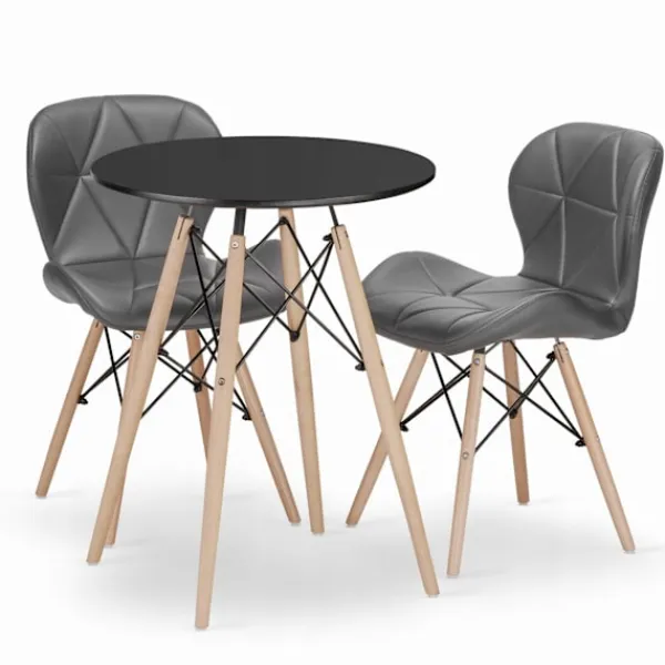 – Setet innehåller 1 svart runt bord och 2 grå stolar