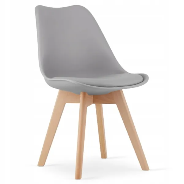 Material: Bord – Möbelskiva med PVC-fanér, Stolar – Polypropylen med dyna i eko-läder, Ben i bokträ