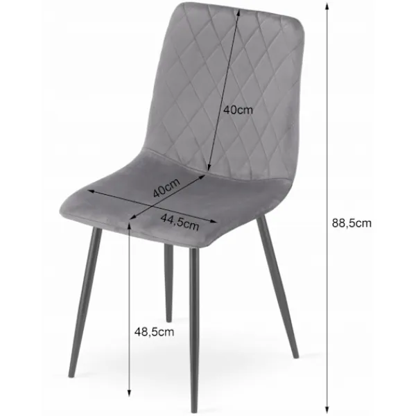 Stolens mått: Höjd – 88,5 cm, Sitthöjd – 48,5 cm, Bredd – 44,5 cm, Sittbredd – 44,5 cm, Djup – 53 cm, Sittdjup – 40 cm