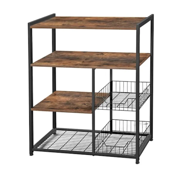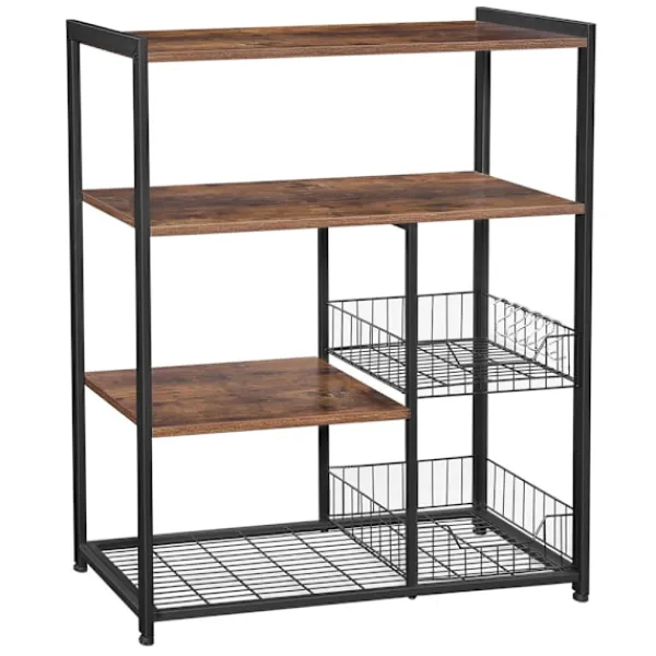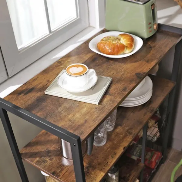 Få ordning på köksytan med ett bakbord med 2 metallkorgar som kombinerar smart design med en rustik, industriell känsla. Den kompakta storleken på 80 x 35 x 95 cm gör den idealisk även i mindre kök, samtidigt som hyllans layout rymmer allt du behöver.