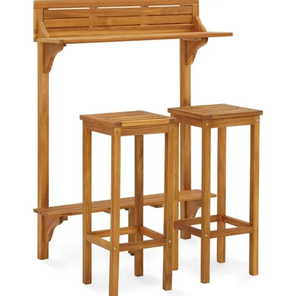 Baren för utomhusbruk kommer bli ett utmärkt tillskott i trädgården eller på uteplatsen då det även kan användas som matbord. Denna balkongbar är tillverkad i massivt akaciaträ med en oljefinish, som gör den stabil och hållbar. Tack vare dess bordsskiva i massivt trä kan den fungera som ett växtställ för att visa dina krukväxter, örter och blommor eller andra dekorationer utomhus, särskilt på mindre balkonger eller uteplatser. Barstolen har fotstöd med utmärkt sittkomfort. De medföljande metallfästena kan användas för att fästa barbordet på balkongräcket. Viktigt: Färger och ådringar varierar från möbel till möbel, vilket gör varje bord unikt; leveransen är slumpmässig.