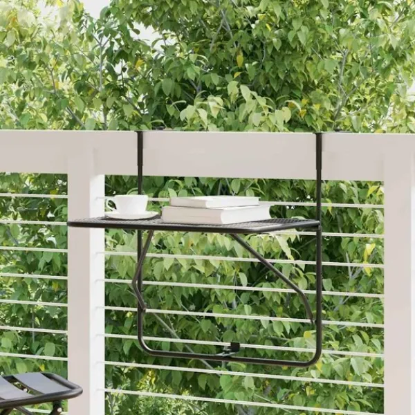 Detta balkongbord blir ett fint tillskott på din balkong. Det kan användas som soffbord att ställa dryck på eller som ett praktiskt arbetsbord för olika saker. Sidobordet är tillverkat i robust stål och är väderbeständigt och stabilt. Nätdesignen och den svarta e-beläggningen skapar en industriell charm på balkongen. Bordet är även enkelt att fälla ihop för att spara plats när det inte används.