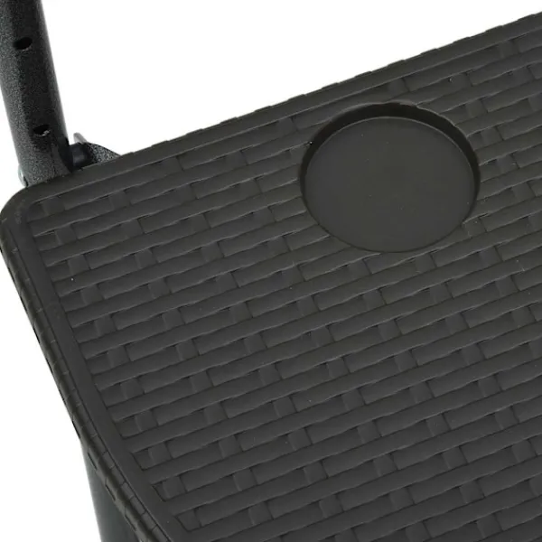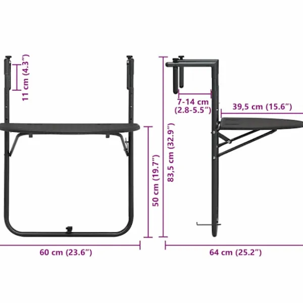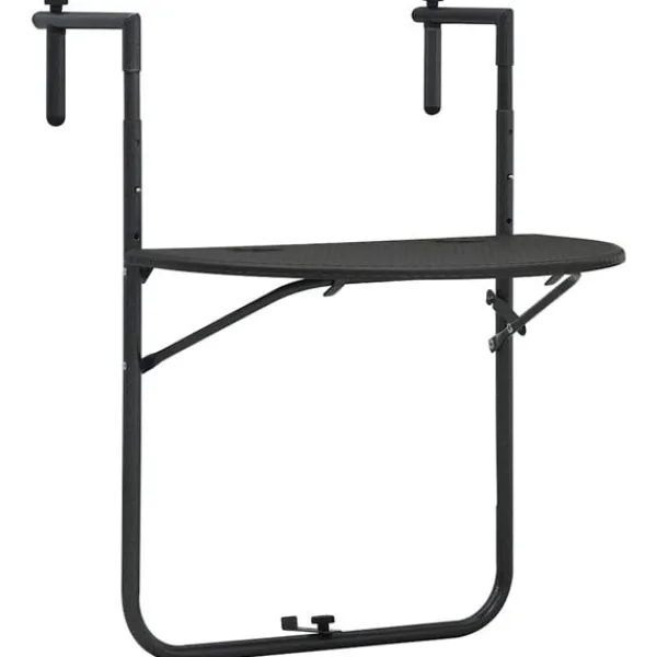 Detta hängande balkongbord blir perfekt på din balkong, det kan fungera som ett soffbord att placera drinkar på eller en bekväm yta att förvara föremål som trädgårdsverktyg eller krukväxter. Det är tillverkat i plast, är väderbeständigt och enkelt att rengöra. Dess rottingdesign bidrar till en naturlig charm på din balkong. Med dess stadiga stålram är bordet högst stabilt. Dessutom kan höjden justeras i 3 nivåer för att tillgodose dina behov. Bordet kan fällas ihop för att spara utrymme när det inte används.