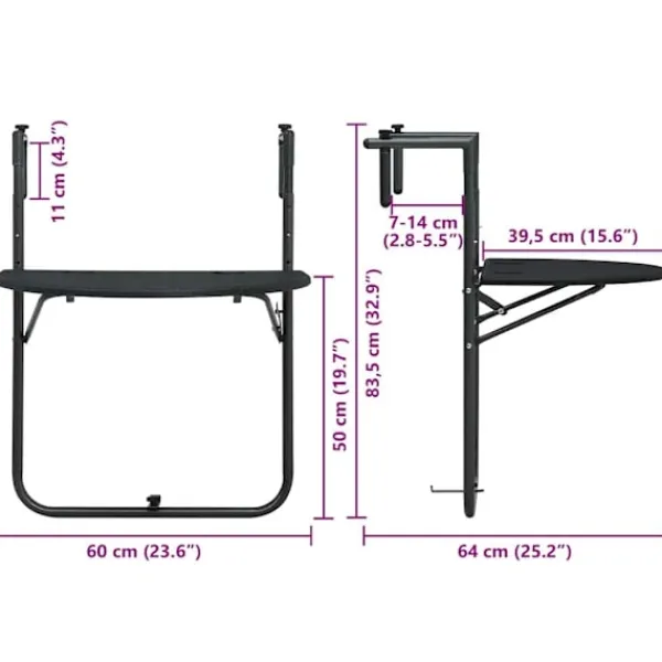 Detta hängande balkongbord blir perfekt på din balkong, det kan fungera som ett soffbord att placera drinkar på eller en bekväm yta att förvara föremål som trädgårdsverktyg eller krukväxter. Det är tillverkat i plast, är väderbeständigt och enkelt att rengöra. Dess rottingdesign bidrar till en naturlig charm på din balkong. Med dess stadiga stålram är bordet högst stabilt. Dessutom kan höjden justeras i 3 nivåer för att tillgodose dina behov. Bordet kan fällas ihop för att spara utrymme när det inte används.