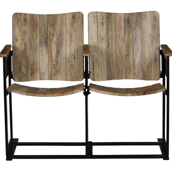 Denna bioinspirerade 2-sitsbänk i trä kombinerar stil med funktionalitet och blir ett snyggt tillägg i din heminredning. Den är ergonomiskt utformad för höjd sittkomfort. Sitsarna, armstöden och ryggstöden på denna bänk är handgjorda i mangoträ som är massivt, stabilt, hållbart och vackert och hantverksskickligheten bidrar till dess spektakulära retro stil. Varje steg i processen utförs med största noggrannhet, vare sig det är polering, målning eller lackering. Hantverksskickligheten och de vackra träådringarna gör varje möbel unik och något annorlunda från de andra. Den robusta stålramen bidrar till såväl bänkens stabilitet som dess vackra industriella stil. Monteringen är enkel. Viktigt: Färger och fibrer kan variera från produkt till produkt, vilket gör varje bänk unik. Leveransen är slumpartad, vilket säkerställer varje produkts exklusivitet och individualitet.