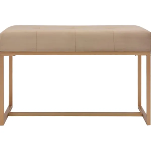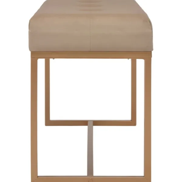 Dess beigea sammetsklädsel är mjuk och högst bekväm samtidigt som den ger din inredning en färgglad detalj, dessutom är benen i pulverlackerat järn väldigt stabila och hållbara. Vår hallbänk blir en elegant dekoration i din inredning och en oumbärlig del av ditt rum.