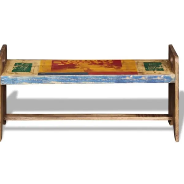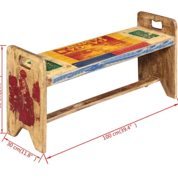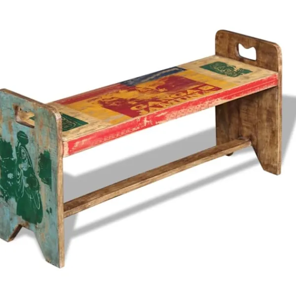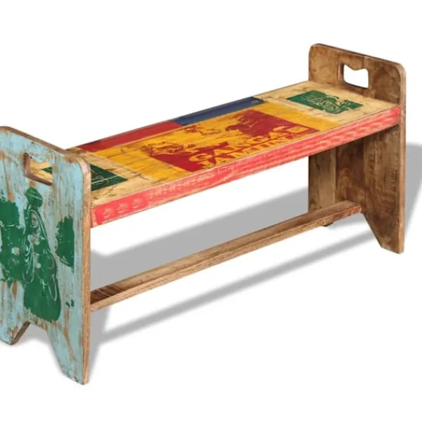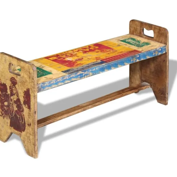 Den här bänken i antik stil kommer att göra ett unikt intryck i ditt hem. Dess massiva träkonstruktion gör den stabil, robust och lämplig för daglig användning. Med ett färgstarkt och dekorativt mönster kommer denna bänk direkt att förbättra din inredning. Den här bänken i vintagestil är tillverkad av massivt återvunnet trä, vilket gör att varje möbel är unik och skiljer sig lite från andra. Möbler av återvunnet trä har karaktärsdrag från olika träslag som sheesham, teak, palisanderträ, mangoträ och akacia. Återvunnet trä är massivt, stabilt, hållbart och vackert. Tecken på nötning och synliga ådringar gör att varje möbel har sin egen historia och ett unikt utseende. Bänken är handgjord och hantverksskickligheten bidrar till den imponerande retrostilen. Varje steg i tillverkningsprocessen görs med stor omsorg, vare sig det är hopsättning, polering, målning eller vaxning. Observera: Färgerna varierar på möblerna vilket gör varje möbel unik. Leveransen är helt slumpmässig.