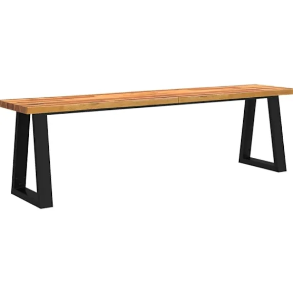 Denna bänk, med sits i massivt akaciaträ och stabila U-formade ben, är ett utmärkt komplement till din matsal, vardagsrum eller hall. Massivt akaciaträ: Bänkens sits är tillverkad av massivt akaciaträ. Massivt akaciaträ är ett vackert naturmaterial. Acaciaträ är ett tropiskt lövträ, som är tätt, robust och hållbart.Levande kant: Träets levande kant som följer trädets naturliga form bidrar till bänkens skönhet.Stabil ram: De U-formade pulverlackerade stålbenen utstrålar en industriell stil i din interiör samtidigt som den säkerställer bänkens stabilitet.