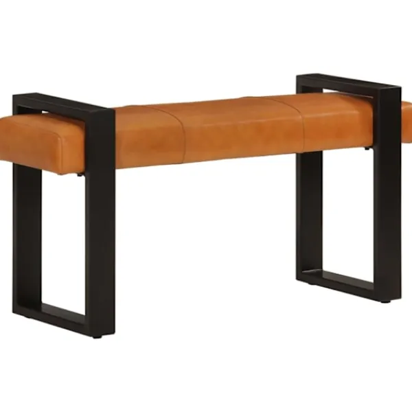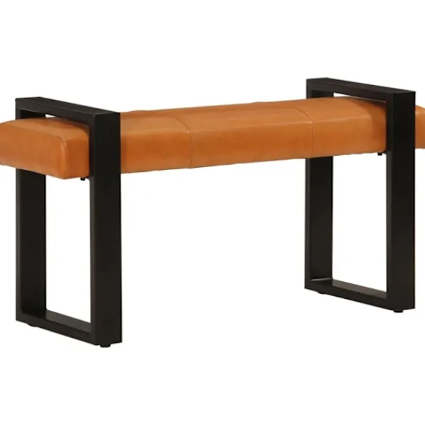 Slappna av på denna bekväma bänk i äkta skinn! Avkopplande sittupplevelse: Hallbänken har en sits av mjukt getskinn, vilket bidrar till en bekväm sittupplevelse. Stabil ram: Matbänken stöds av en pulverlackerad järnram, vilket gör den stabil och robust.Unik design: Den lyxiga ytan och den fantastiska metalltekniken gör bänken unik, full av textur och lager. Observera:Färgerna kan variera från möbel till möbel vilket gör varje möbel unik. Leveransen är slumpmässig, vilket säkerställer varje produkts exklusivitet och individualitet.Varje produkt levereras med en monteringsmanual i lådan för enkel montering.