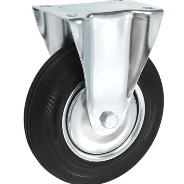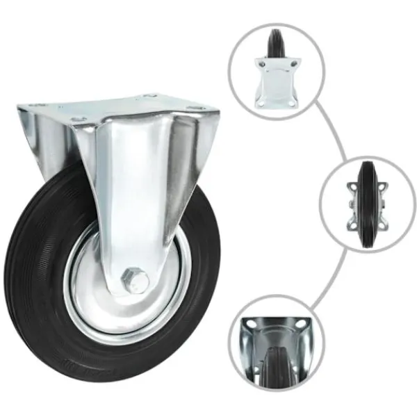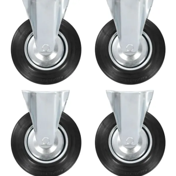Hjulen är tillverkade i gummi som kännetecknas av sitt goda stötdämpande vibrationsmotstånd, som gör dem smidiga och tysta. Dessutom skyddar hjulens mjuka yta ditt golv från repor. Ramen i zinkbelagt järn är högst rostbeständig och bidrar därmed till hjulens stadighet. Varje hjul har en maximal lastkapacitet på 180 kg.