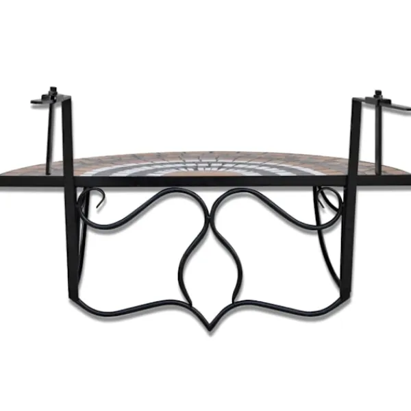 Detta hängbord är lämpligt att hänga upp på en list upp till 18 cm bred. Den kommer att bli ett snyggt komplement till er balkong, samtidigt som det erbjuder möjligheten att ta en mysig fika på balkongen. Bordet har en stark och pålitlig järnram med en bordsskiva i keramik som är väderbeständig, samt lätt att rengöra. Detta balkongbord är både snyggt och praktiskt med sin halvrunda design och konstruktion. Det är både enkelt och smidigt att montera eller demontera när det inte används.