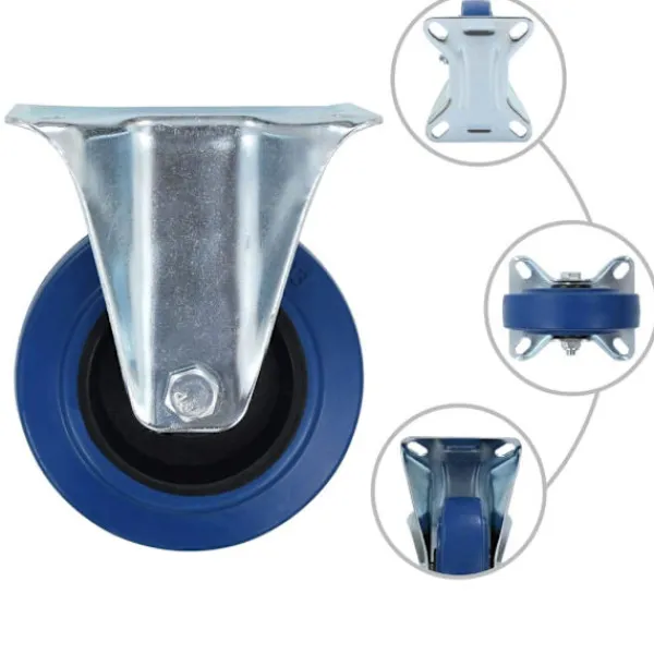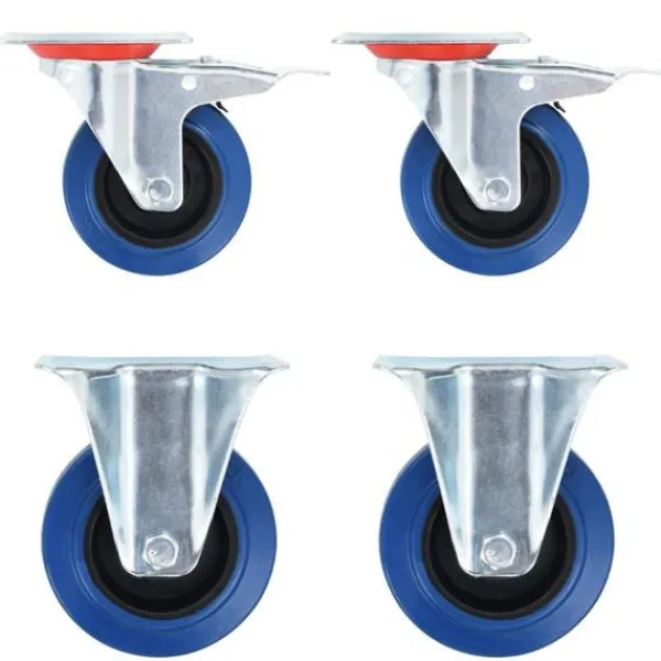 Den här uppsättningen om 12 hjul blir ett bra tillbehör för mindre utrustning och möbler såsom arbetsbänkar, vagnar, soffbord, växtställ, bokhyllor, kundvagnar med mera. Länkhjulen är tillverkade i gummi som kännetecknas av sitt goda stötdämpande vibrationsmotstånd, som gör dem smidiga och tysta. Dessutom skyddar hjulens mjuka yta ditt golv från repor. Ramen i zinkbelagt järn är högst rostbeständig och bidrar därmed till hjulens stadighet. Hälften av dessa hjul är utrustade med bromsar för flexibel kontroll. Varje länkhjul har en maximal lastkapacitet på 80 kg. Vid leverans ingår 6 fasta hjul och 6 länkhjul med bromsar.